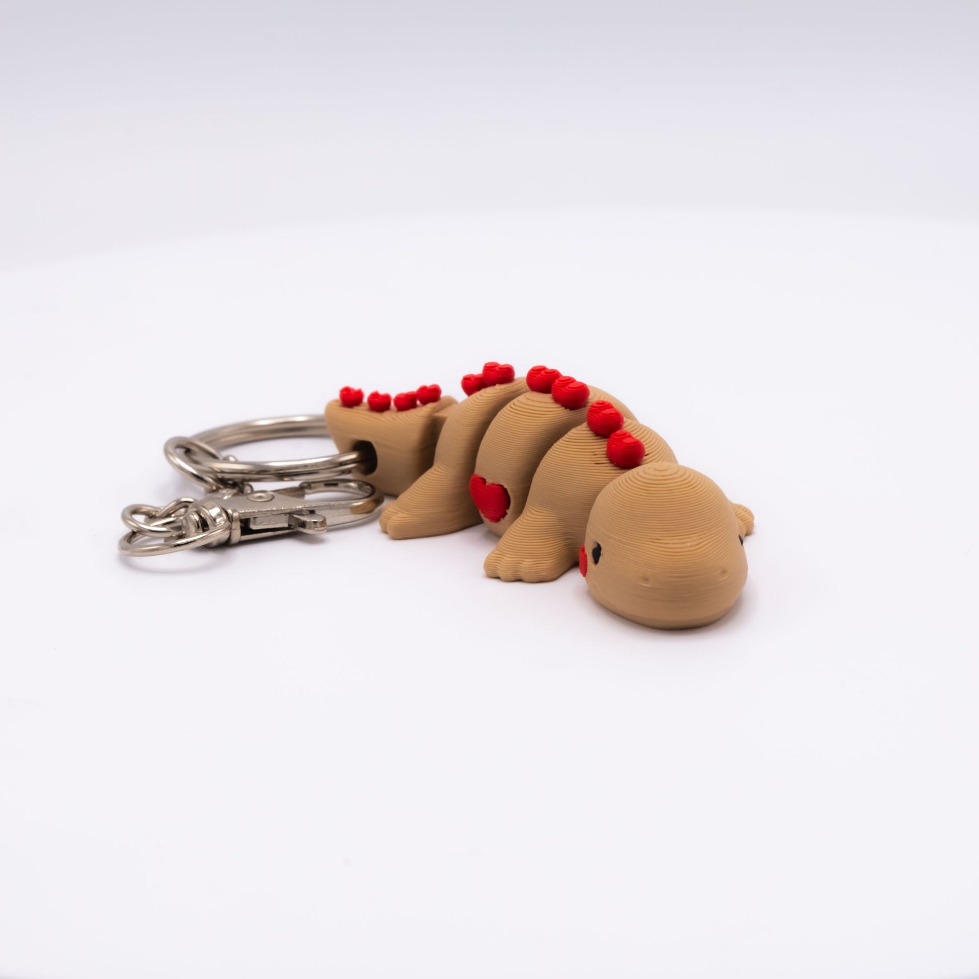 Looking for a prehistoric pal with a bit more of an "outdoorsy" vibe? Say hello to Barnaby, the beige brother to Penelope! This long-neck explorer is ready to trade the desert dunes for a spot on your backpack. With his warm, sandy tone and those vibrant red heart-shaped scales, Barnaby is the perfect blend of rugged and sweet.